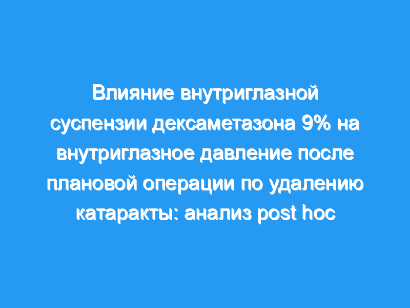 Внутриглазная суспензия дексаметазона ассоциировалась с повышением ВГД, сопоставимым с местный преднизолон. Высокая близорукость, более высокое исходное ВГД и мужской пол были значимыми предикторами послеоперационного повышения ВГД в этой когорте.