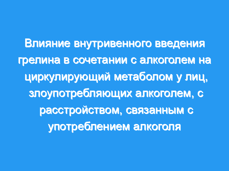 Грелин может влиять на некоторые виды поведения, связанные с алкоголем, у животных и людей, модулируя центральные и/или периферические биологические пути. Целью этого исследовательского анализа было изучение ассоциаций между введением грелина и циркулирующим метаболитом человека во время воздействия алкоголя у лиц, не нуждающихся в лечении, сильно пьющих людей с расстройством, связанным с употреблением алкоголя (AUD).