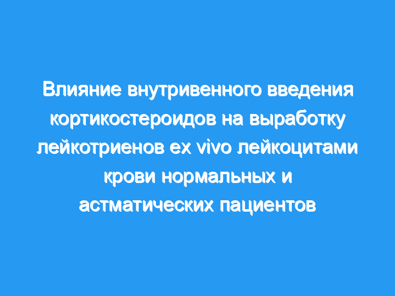 Стимулированный ионофором синтез LTC(4) (но не LTB(4)) в гранулоцитах крови, как правило, был выше у пациентов с астмой (в среднем 9,7 нг/10(6) клеток), чем у нормальных пациентов (4,2 нг/10(6) клеток, р = 0,08) и внутривенное введение метилпреднизолона снижали синтез LTC(4) (но не LTB(4)) до нормальных уровней (2,9 нг/10(6) клеток, 95% ДИ для снижения от 1,0 до 12,5 нг/10(6) клеток, р = 0,03). В мононуклеарных клетках крови метилпреднизолон снижал синтез LTC(4) у пациентов с астмой с 1,26 до 0,79 нг/10(6) клеток (95% ДИ для снижения от 0,26 до 0,79, р = 0,014) и имел тенденцию к снижению синтеза LTC(4) у нормальных пациентов с 1,51 до 0,86 нг/10 (6) клетки (р = 0,08). Метилпреднизолон также значительно снижал синтез LTB(4) в мононуклеарных клетках из обеих групп испытуемых (р = 0,014). Это не оказывало никакого влияния ни на синтез LT в клетках BAL ни из одной группы, ни на уровни LT в жидкости BAL.