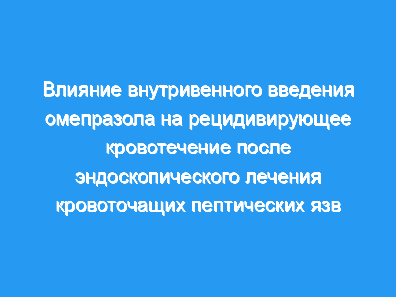Мы оценили, уменьшит ли применение высокой дозы ингибитора протонной помпы частоту рецидивирующих кровотечений после эндоскопического лечения кровоточащих пептических язв. Пациентов с активно кровоточащими язвами или язвами с не кровоточащими видимыми сосудами лечили инъекцией адреналина с последующей термокоагуляцией. После достижения гемостаза они были рандомизированы двойным слепым методом для получения омепразола (вводимого в виде болюсной внутривенной инъекции 80 мг с последующей инфузией 8 мг в час в течение 72 часов) или плацебо. После инфузии всем пациентам давали 20 мг омепразола перорально в день в течение восьми недель. Первичной конечной точкой было рецидивирующее кровотечение в течение 30 дней после эндоскопии.