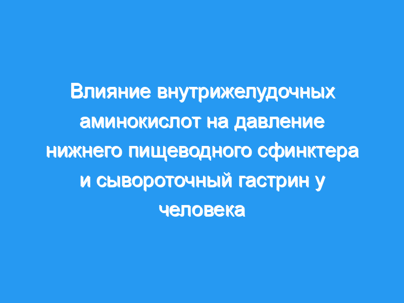 Только триптофан оказывал значительное влияние на давление в ЛЭС по сравнению с физиологическим раствором, снижая давление в ЛЭС с 20 до 60 мин после введения (р менее 0,01). Только фенилаланин и триптофан вызывали значительную стимуляцию уровней гастрина в сыворотке крови с пиковым повышением выше базального уровня, происходящим через 30 мин после введения (р менее 0,05). Сделан вывод, что: аспарагиновая кислота, лейцин и глицин не вызывали существенных изменений давления LES или уровня сывороточного гастрина, триптофан и фенилаланин значительно увеличивали концентрацию сывороточного гастрина, триптофан значительно снижал давление LES, тогда как фенилаланин не оказывал никакого эффекта, механизм ингибирования давления LES триптофаном не определен и может быть опосредован нервные или гормональные пути, возможно, с участием рецептора двенадцатиперстной кишки.
