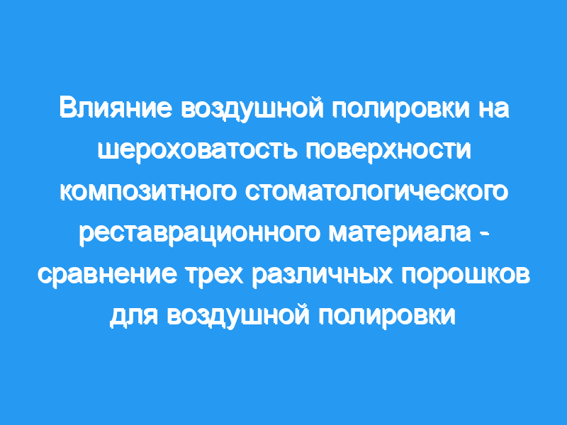 Повышенная шероховатость композита усиливает бактериальную адгезию и изменение цвета, тем самым увеличивая риск воспаления десен и вторичного кариеса. Опасения по поводу вредного воздействия бикарбоната натрия на шероховатость поверхности повлияли на разработку менее абразивных порошков: порошка на основе глицина и порошка на основе эритрита, дополнительно — порошка на основе бикарбоната натрия с уменьшенным размером зерен. Однако имеются ограниченные данные о воздействии этих материалов на поверхность зубных пломб. Целью настоящего исследования было сравнение влияния трех порошков для воздушной полировки (с пониженной абразивностью) на шероховатость поверхности микрогибридного восстановительного композитного материала.