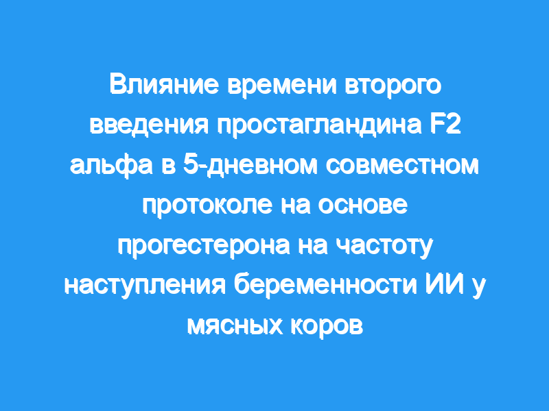52,7% соответственно (P <, 0,05). В заключение, коровы, которые получили второй PGF поздно после первого PGF в день удаления CIDR в 5-дневном протоколе синхронизации CO-Synch + CIDR, имели значительно более высокие показатели беременности по времени ИИ, чем те, которые получали второй PGF рано после первого PGF.