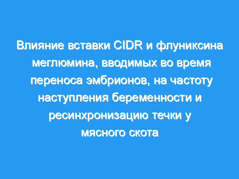Целью этого исследования было оценить влияние флуниксина меглюмина (FM), ингибитора синтеза PGF(2alpha), и введения интравагинального устройства, высвобождающего прогестерон (CIDR), на показатели беременности у реципиентов переноса эмбрионов мясного скота (ET), а также изучить влияние влияние CIDR после переноса эмбрионов на синхронность возвращения к течке у небеременных реципиентов.