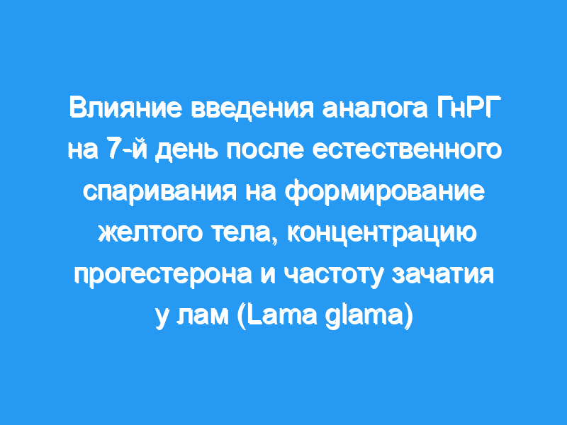 Кроме того, концентрация P4 была одинаковой у женщин, получавших ГнРГ, с двумя CL, и у женщин с одним CL. Частота наступления беременности была одинаковой (P >, 0,05) между группами SS и GnRH (55,2% по сравнению с 74,1% соответственно), а на частоту наступления беременности в группе ГнРГ не повлияло (P >, 0,05) количество CL, наблюдаемых на 14-й день (66,6% и 75,6% для женщин с одним и двумя CL соответственно). В заключение, введение ГнРГ на 7-й день после размножения приводит к образованию ACL, однако наличие ACL не повлияло ни на концентрацию P4 в плазме, ни на частоту наступления беременности.