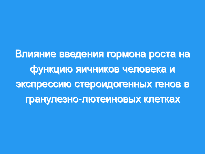 Эти результаты указывают на то, что введение GH изменяет стероидогенный ответ яичников на гонадотропины у пациенток с ЭКО, предполагая роль GH в регуляции функции яичников человека.