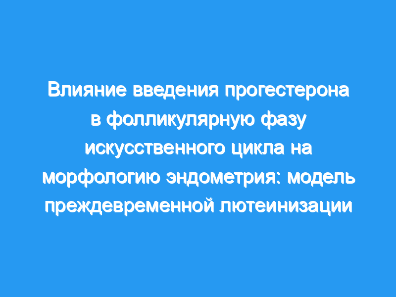 Эпизодические скачки уровня Р во время фолликулярной фазы могут привести к нарушению развития эндометрия, которое не может быть исправлено добавками Р во время лютеиновой фазы. Эта уникальная модель свидетельствует о потенциальном пагубном влиянии преждевременной секреции Р в фолликулярной фазе на функцию эндометрия.