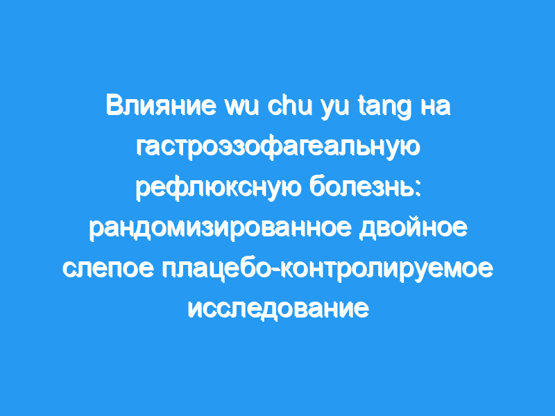 Основными симптомами гастроэзофагеальной рефлюксной болезни ГЭРБ являются изжога и кислотная регургитация. Ингибиторы протонной помпы (ИПП) считаются безопасными и эффективными для лечения ГЭРБ. В традиционной китайской медицине wu chu yu tang (WCYT) используется для лечения тошноты после еды, рвоты и диареи.