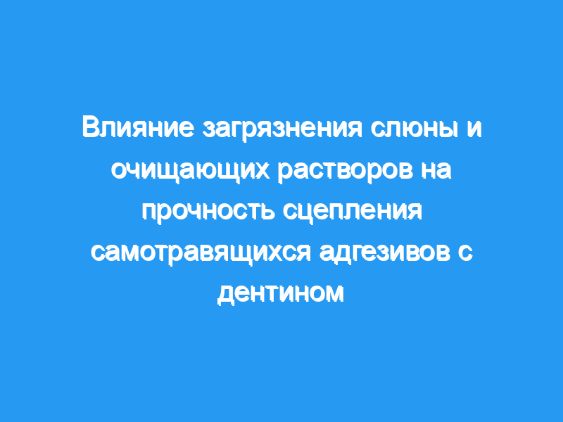 В этом исследовании было определено влияние загрязнения слюны и очищающих растворов на прочность микротравматического сцепления самотравливающихся адгезивов с дентином.