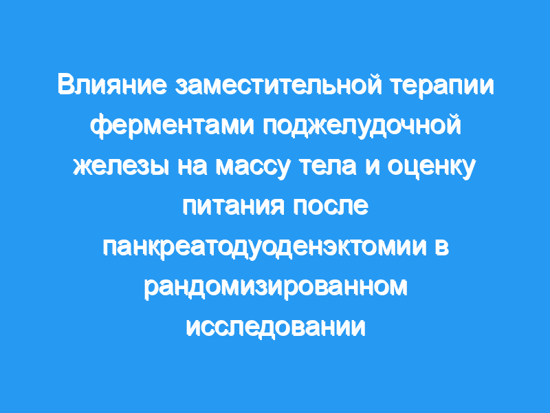 При анализе данных рандомизированного исследования с целью лечения мы не обнаружили существенного влияния PERT на среднюю массу тела пациентов с экзокринной недостаточностью поджелудочной железы после панкреатодуоденэктомии. Однако при активном обучении и мониторинге PERT может увеличить массу тела и параметры питания. ClinicalTrials.gov номер: NCT02127021.