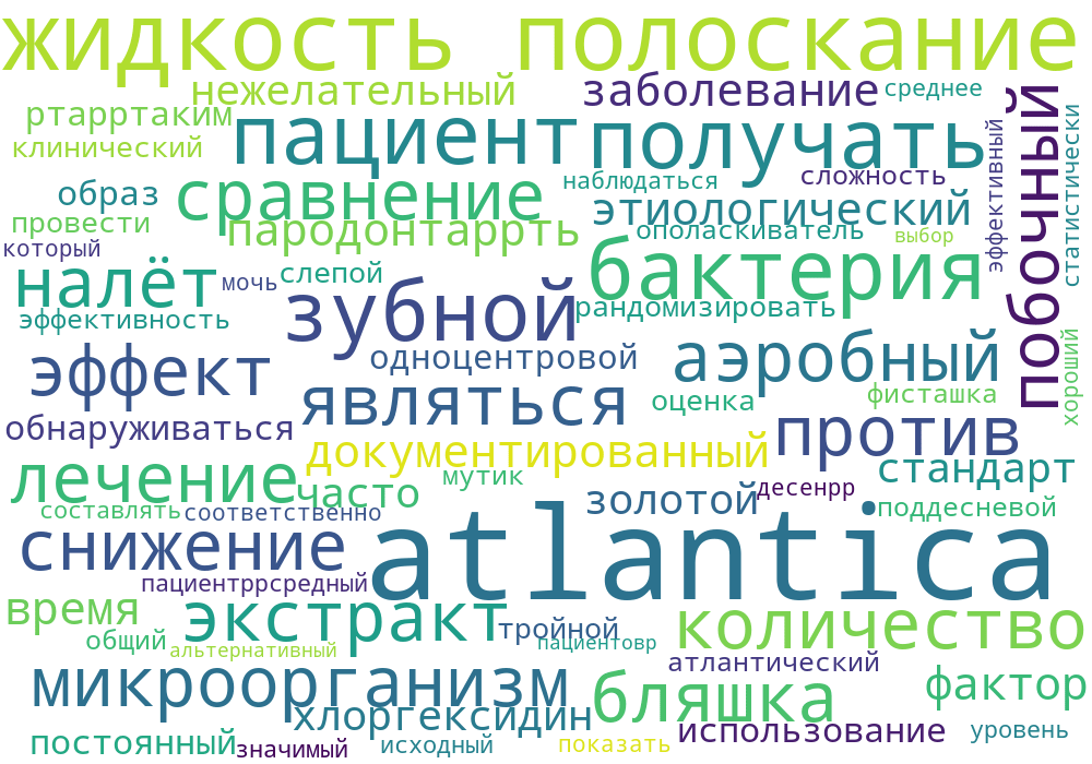 Среднее количество аэробных бактерий в бляшках у пациентов на исходном уровне составляло 2,17 × 10(6). После 4 дней лечения наблюдалось статистически значимое снижение среднего количества аэробных бактерий у пациентов, получавших P. atlantica и/или CHX (7,25 × 10(4), р = 0,006) и (9,91 × 10(3), р = 0,002) соответственно, по сравнению с пациентами, которые получали P. atlantica и/или CHX. получали плацебо (6,26 × 10(5)). Это исследование показало, что жидкость для полоскания рта P. atlantica эффективна против микроорганизмов десен.
