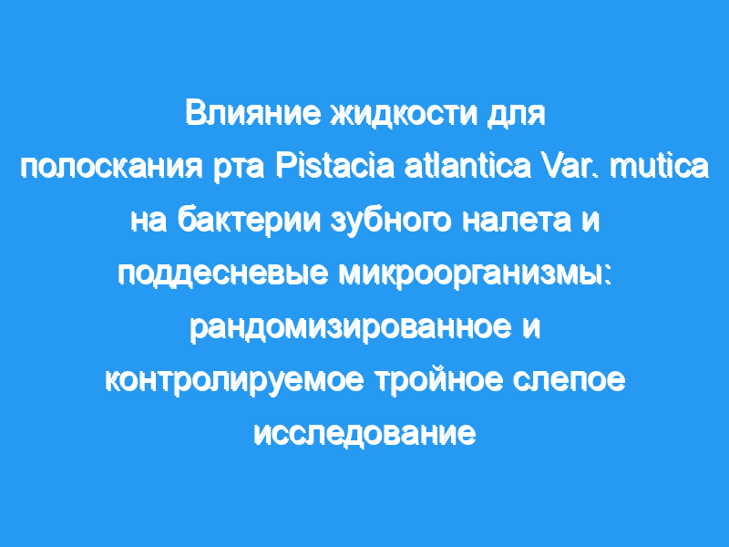 Таким образом, это одноцентровое рандомизированное тройное слепое клиническое исследование было проведено для оценки эффективности ополаскивателя для рта с экстрактом фисташки атлантической Va.