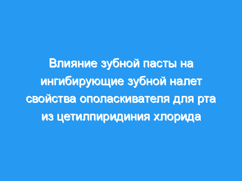 Зубная паста, хотя и обладает некоторой активностью, препятствующей образованию зубного налета, при использовании непосредственно перед полосканием рта CPC отрицательно влияет на ингибирующее зубной налет действие этого антисептика. Это отчасти может объяснить отсутствие дополнительных преимуществ ополаскивателей CPC по сравнению с обычной практикой гигиены полости рта и подтверждает предложение, сделанное в отношении ополаскивателей с хлоргексидином, о том, что их использование должно следовать за зубной пастой не менее чем на 60 минут.