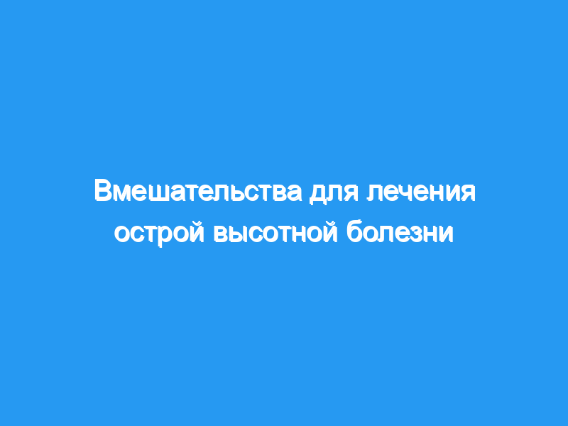 Острая высотная болезнь определяется как группа церебральных и легочных синдромов, которые могут возникнуть во время путешествия на большие высоты. Он чаще встречается выше 2500 метров, но может наблюдаться и на более низких высотах, особенно у восприимчивых людей. Острая высотная болезнь включает в себя широкий спектр синдромов, определяемых терминами «острая горная болезнь» (AMS), «отек головного мозга на большой высоте» и «отек легких на большой высоте». Существует несколько доступных методов лечения этого состояния, как фармакологических, так и немедикаментозных, однако существует большая неопределенность относительно их пользы и вреда.
