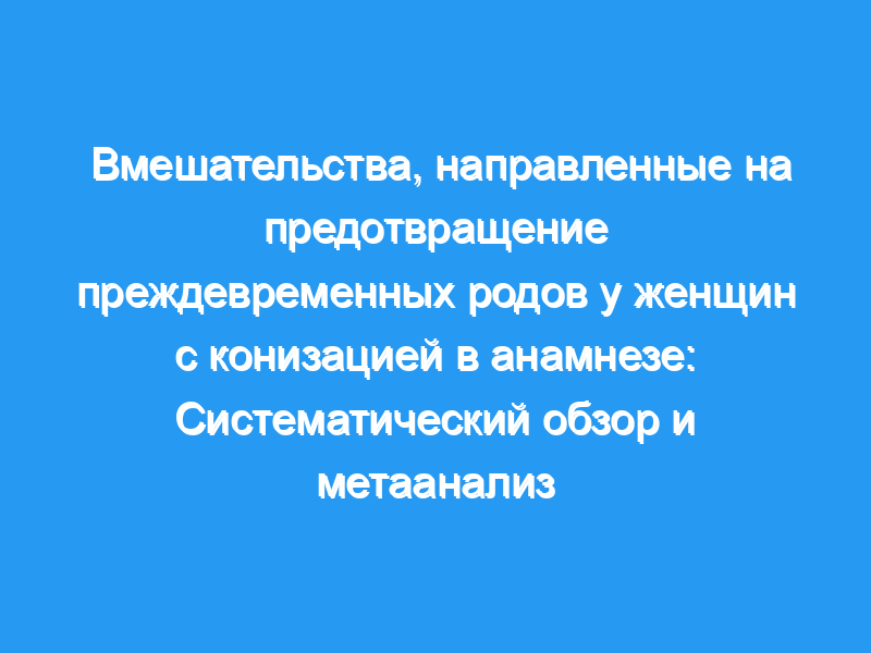 Мы отобрали 762 не повторяющихся названия и тезисы и оценили 91 полный текст. Связавшись с авторами, мы включили девять исследований. Женщины в группе серкляжа с большей вероятностью имели короткую шейку матки или другой фактор риска ПТБ, что повышало вероятность путаницы по показаниям. У женщин с конизацией в анамнезе и одиноким ребенком, получавших серкляж, по сравнению с теми, кто этого не делал, ORs PTB <, 34 недели, составил 3,99 (95% ДИ 0,67-23,62, три исследования, I2 = 65%), PTB <, 37 недель составил 2,10 (95% ДИ 0,67-23,62, три исследования, I2 = 65%).% ДИ 0,87-5,05, четыре исследования, I2 = 0%), а неонатальная смертность составила 8,33 (95% ДИ 0,22-320,38, два исследования, I2 = N/A). Мы не нашли никаких исследований, сравнивающих прогестерон или пессарий с отсутствием лечения. Данные о близнецах были очень скудными.