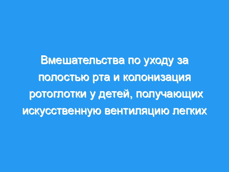 Применение хлоргексидина в сочетании с нефармакологическим уходом за полостью рта не уменьшало профиль колонизации, продолжительность искусственной вентиляции легких или продолжительность пребывания у тяжелобольных детей, получающих искусственную вентиляцию легких.