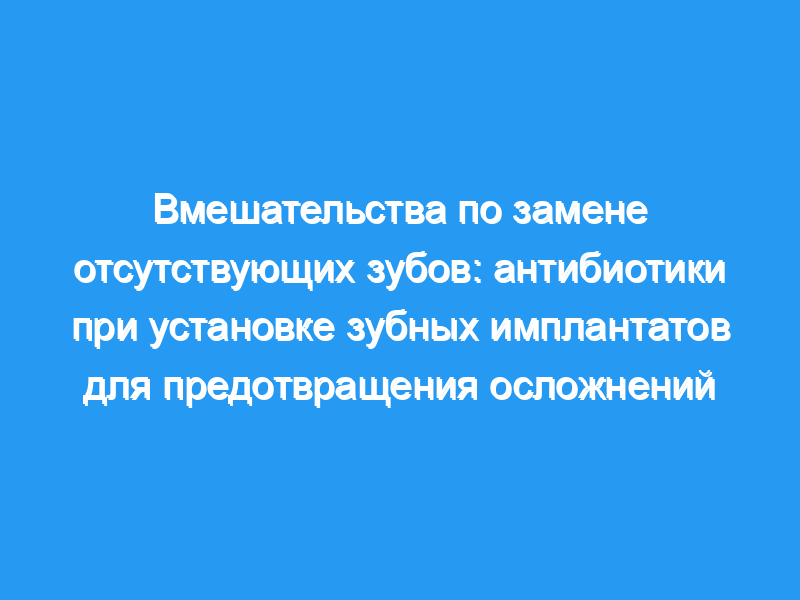 Некоторые поломки зубных имплантатов могут быть вызваны бактериальным загрязнением при установке имплантата. Инфекции вокруг биоматериалов трудно поддаются лечению, и почти все инфицированные имплантаты должны быть удалены. В целом, антибиотикопрофилактика в хирургии показана только пациентам с риском инфекционного эндокардита, пациентам со сниженной реакцией хозяина, когда операция проводится в инфицированных местах, в случаях обширных и длительных хирургических вмешательств и при имплантации крупных инородных материалов. Для минимизации инфекций после установки зубных имплантатов были предложены различные профилактические системные схемы приема антибиотиков. Более поздние протоколы рекомендовали кратковременную профилактику, если необходимо использовать антибиотики. При приеме антибиотиков могут возникать побочные эффекты, начиная от диареи и заканчивая опасными для жизни аллергическими реакциями. Еще одной серьезной проблемой, связанной с широким использованием антибиотиков, является отбор устойчивых к антибиотикам бактерий. Использование профилактических антибиотиков в имплантологии является спорным.
