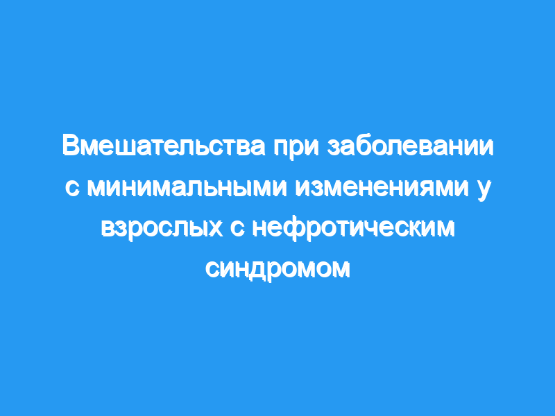 Определить пользу и вред вмешательств при нефротическом синдроме у взрослых, вызванном болезнью минимальных изменений. Стратегия поиска: Мы искали в Центральном реестре контролируемых исследований Кокрейна, MEDLINE, EMBASE, справочных статьях и тезисах докладов конференций без языковых ограничений. Дата поиска: январь 2007 года. Критерии отбора: Были включены рандомизированные контролируемые исследования (РКИ) и квази-РКИ любого вмешательства при заболевании с минимальными изменениями у взрослых старше 18 лет с нефротическим синдромом. Были отобраны исследования, сравнивающие различные пути, частоту и продолжительность применения иммуносупрессивных средств. Также были оценены исследования, сравнивающие неиммуносупрессивные препараты. Сбор и анализ данных: Два автора независимо оценивали качество исследования и извлекали данные. Статистический анализ был проведен с использованием модели случайных эффектов, и результаты были выражены в виде относительного риска (RR) для дихотомических исходов или средней разницы (WMD) для непрерывных данных с 95% доверительными интервалами (ДИ).