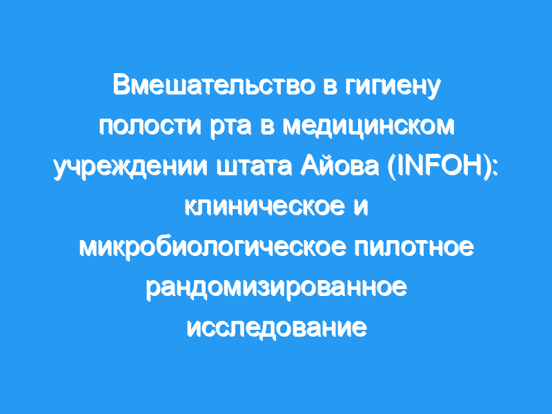Цель/задача: Целью этого пилотного исследования была оценка осуществимости и сбор исходных данных для окончательного исследования для проверки клинической и микробиологической эффективности индивидуального протокола гигиены полости рта в медицинском учреждении (NF), предназначенного для стоматологов-гигиенистов и персонала NF.
