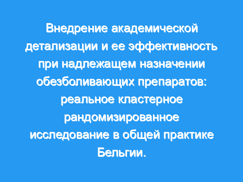 Национальное внедрение академической детализации в общей практике Бельгии, предоставленной компанией «Фармака», значительно улучшило долю рекомендуемых НПВП, назначаемых врачами общей практики, но не другие результаты, связанные с надлежащим назначением обезболивающих препаратов. Пробная регистрация: NCT01761864 . Зарегистрирован 2 января 2013 года.