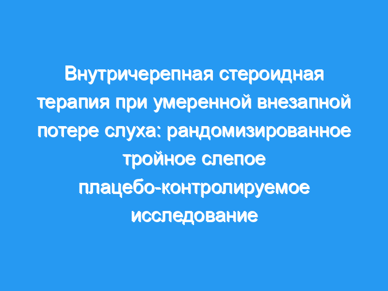Цели/гипотеза: Исследовать эффективность внутричерепного стероида в качестве терапии первой линии у пациентов, страдающих умеренной идиопатической внезапной нейросенсорной тугоухостью (ISSNHL). План исследования: Проспективное рандомизированное тройное слепое плацебо-контролируемое исследование.