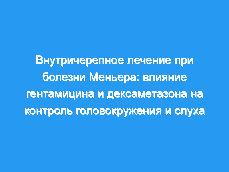 Методы внутричерепного лечения при болезни Меньера просты в исполнении, дешевы и эффективны. Ожидается, что в будущем они будут иметь более широкое применение с более высокими показателями успеха.