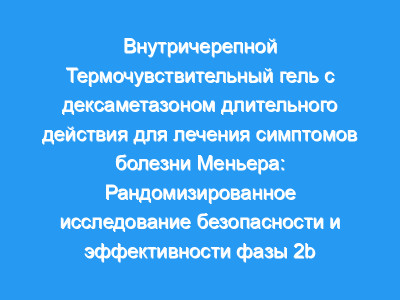 Оценить безопасность и эффективность однократной внутричерепной инъекции дексаметазона длительного действия OTO-104 у пациентов с односторонней болезнью Меньера. План исследования: Рандомизированное двойное слепое плацебо-контролируемое исследование фазы 2b в течение 5 месяцев.