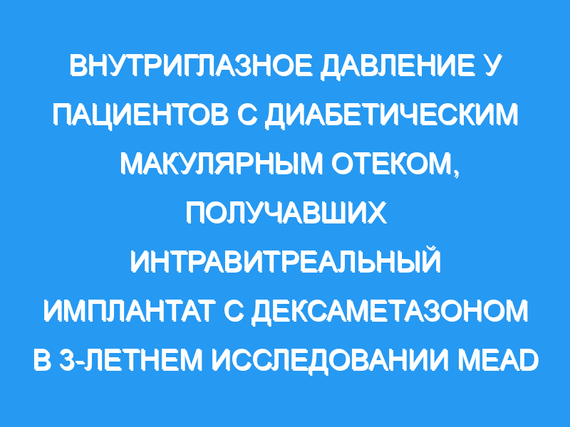 Оценить возникновение, лечение и клиническую значимость повышения внутриглазного давления (ВГД) у пациентов с диабетическим макулярным отеком, получавших интравитреальный имплантат дексаметазона (DEX implant).