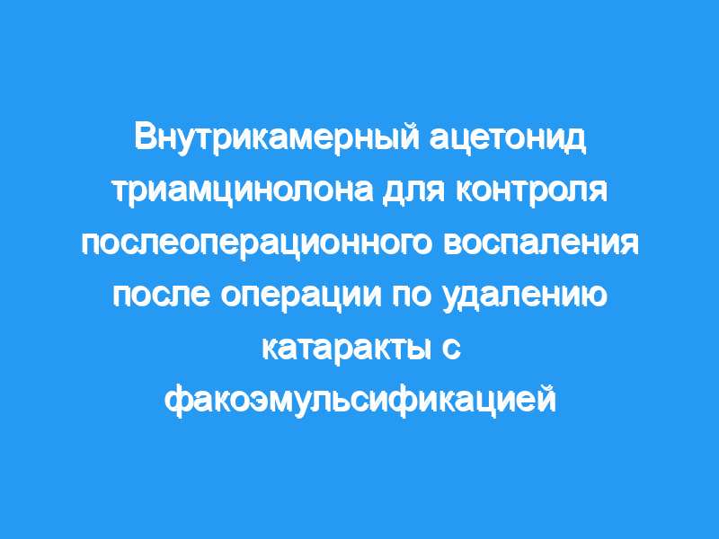 Внутрикамерный ТА в дозе 1 мг может эффективно использоваться для контроля послеоперационного воспаления после неосложненной операции по удалению катаракты с факоэмульсификацией. Это позволяет уменьшить дозировку и продолжительность местного применения ацетата преднизолона.