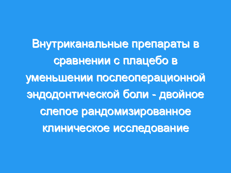 Целью этого проспективного рандомизированного двойного слепого факторного исследования было сравнение эффективности трех различных интраканальных препаратов с плацебо в контроле послеоперационной боли после полной подготовки корневого канала.