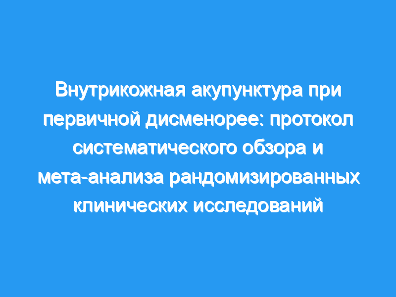 Систематический обзор этого исследования обобщит опубликованные в настоящее время данные о внутрикожной акупунктурной терапии первичной дисменореи, чтобы в дальнейшем направлять ее продвижение и применение.