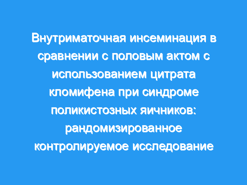 Сравнить эффективность внутриматочной инсеминации и своевременного полового акта с использованием цитрата кломифена в качестве первой линии лечения ановуляторного бесплодия, связанного с синдромом поликистозных яичников. Дизайн: Рандомизированное контролируемое исследование в соответствии с критериями КОНСОРТА.