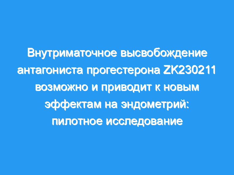 Кратковременное внутриматочное высвобождение ZK230211 не изменило характер кровотечения и не привело к подавлению эндометрия. Экспрессия маркеров пролиферации была низкой после применения обоих ВМС. Отсутствие IGFBP-1 и увеличение PR отражают побочные эффекты ZK230211.