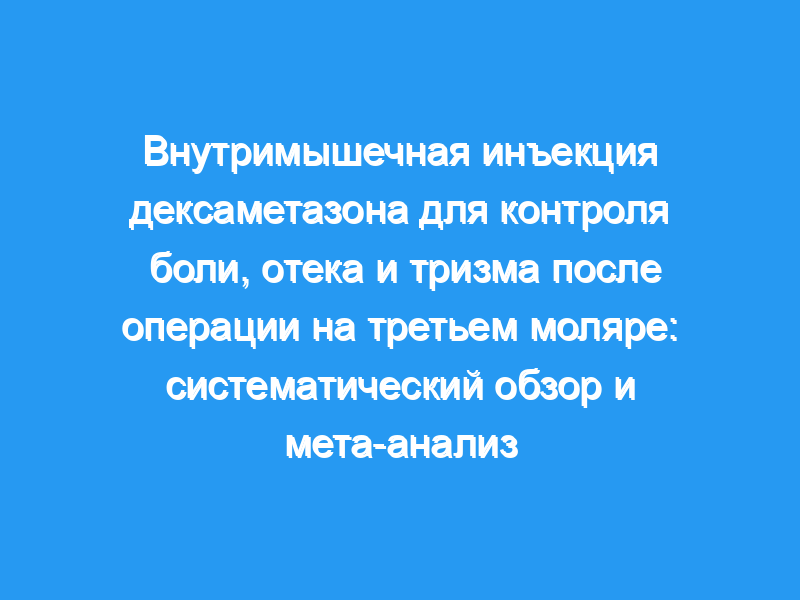 Большинство исследований имели неясный риск предвзятости (оценка Кокрейновского справочника). Боль (средняя разница (MD) -1,58, 95% доверительный интервал (ДИ) -1,99 -1,16) и отек (MD -1,76, 95% ДИ -2,38 -1,14) были ниже в группе внутримышечного введения дексаметазона по сравнению с контрольной группой.