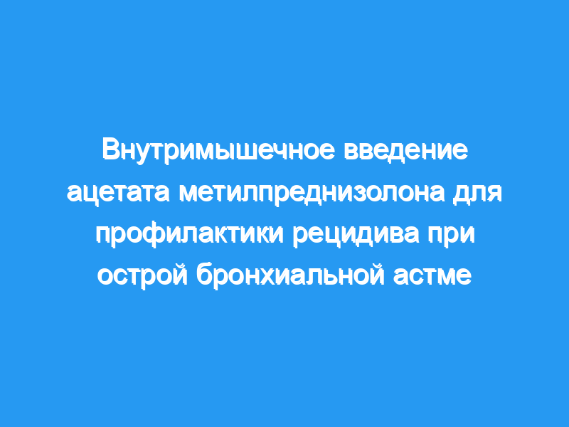 Отделение неотложной помощи городского академического медицинского центра. Тип участников: Пациенты с острой астмой в возрасте от 18 до 45 лет, которые успешно лечились в ED. Вмешательства: Участники получали либо плацебо с физиологическим раствором внутримышечно, либо суспензию метилпреднизолона ацетата в дозе 240 мг во время выписки. ИЗМЕРЕНИЯ И ОСНОВНОЙ РЕЗУЛЬТАТ: Рецидив, определяемый как необходимость обращения за нерегулярной медицинской помощью по поводу астмы в течение семи дней после выписки, был основным показателем результата. Из 70 поступивших пациентов 56 (80%) завершили наблюдение, в том числе 30 в группе стероидов и 26 в группе плацебо. Группы имели схожие характеристики и пиковые значения потока выдоха при поступлении и при выписке. Рецидив произошел у двух пациентов, получавших стероиды (6,7%), и у восьми пациентов, получавших плацебо (30,8%) (P <, 0,05). В группе, получавшей плацебо, была одна смерть. Сообщенные побочные эффекты были аналогичными.