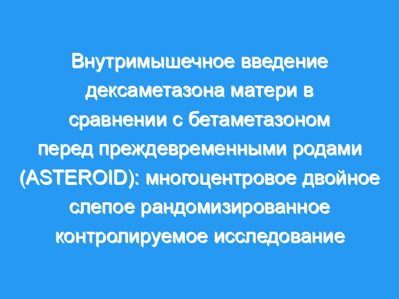В этом многоцентровом двойном слепом рандомизированном контролируемом исследовании мы привлекли беременных женщин из 14 родильных домов Австралии и Новой Зеландии, которые могли бы оказывать помощь недоношенным детям. Женщины имели право на включение в исследование, если они подвергались риску преждевременных родов до 34 недель беременности, имели одноплодную или двойную беременность и не имели противопоказаний к антенатальным кортикостероидам. Мы случайным образом распределили женщин (1:1) на две внутримышечные инъекции либо 12 мг дексаметазона (дексаметазон натрия фосфат), либо 11·4 мг бетаметазона (Целестон Хронодоза) с интервалом в 24 часа. В схеме рандомизации использовались сбалансированные, переменные блоки, которые были стратифицированы по больнице, гестационному возрасту и количеству плодов (одноплодных или двойняшек). Мы распределили всех участников, персонал и экспертов по лечебным группам. Анализы были сделаны с намерением лечить. Первичным исходом была смерть или нейросенсорная инвалидность в возрасте 2 лет (с поправкой на недоношенность). Это исследование зарегистрировано в ANZCTR, ACTRN12608000631303. Результаты: В период с 28 января 2009 года по 1 февраля 2013 года мы случайным образом распределили 1346 (78%) женщин, которые были беременны 1509 плодами, на группы: 679 (50%) женщин были назначены на прием дексаметазона и 667 (50%) женщин были назначены на прием бетаметазона. 27 (4%) плодов, младенцев или детей в группе дексаметазона и 28 (4%) плодов, младенцев или детей в группе бетаметазона умерли в возрасте до 2 лет. Первичный исход смерти или нейросенсорной инвалидности в возрасте 2 лет был определен для 603 (79%) из 763 плодов, матери которых получали дексаметазон, и 591 (79%) из 746 плодов, матери которых получали бетаметазон. Мы обнаружили сходную частоту смерти или нейросенсорной инвалидности в группах дексаметазона (198 [33%] из 603 младенцев) и бетаметазона (192 [32%] из 591 младенца, скорректированный относительный риск [adjRR] 0·97, 95% ДИ от 0·83 до 1·13, p=0·66). 18 (3%) из 679 женщин в группе дексаметазона и 28 из 667 (4%) женщин в группе бетаметазона сообщили о побочных эффектах. Дискомфорт в месте инъекции, наиболее частый побочный эффект, был менее вероятен в группе дексаметазона, чем в группе бетаметазона (шесть [1%] женщин против 17 [3%] женщин, р=0,02). Интерпретация: Частота выживаемости без нейросенсорной инвалидности в возрасте 2 лет не различалась при лечении дексаметазоном и бетаметазоном. Наши результаты показывают, что любой дородовой кортикостероид может быть назначен женщинам до преждевременных родов для улучшения здоровья младенцев и детей. Финансирование: Национальный совет по здравоохранению и медицинским исследованиям (Австралия).