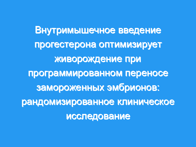 Определить, не уступает ли вагинальный прогестерон для программируемой подготовки эндометрия внутримышечному прогестерону по показателям живорождаемости в результате переноса замороженных эмбрионов (FET). Дизайн: Трехэтапное рандомизированное контролируемое исследование неполноценности.