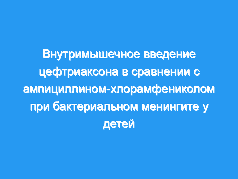 70 детей в возрасте от 4 месяцев до 12 лет с бактериологически подтвержденным бактериальным менингитом лечились либо внутримышечно (внутримышечно) цефтриаксоном (ЦФТ) в дозе 100 мг/кг один раз в день, либо комбинированным введением ампициллина в дозе 160 мг/кг/сут и хлорамфеникола в дозе 100 мг/кг/сут (АМС). назначается каждые 6 .