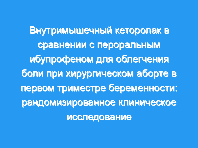 Внутримышечный кеторолак не обеспечивает лучшего контроля боли по сравнению с пероральным ибупрофеном при хирургическом аборте в первом триместре беременности. Последствия: Внутримышечное введение кеторолака не обеспечивает лучшего контроля боли, чем пероральный прием ибупрофена во время хирургического аборта в первом триместре беременности, является более дорогостоящим и вызывает у пациенток значительный дискомфорт в руке. Поэтому его применение следует зарезервировать для пациентов, которые не переносят пероральные НПВП.