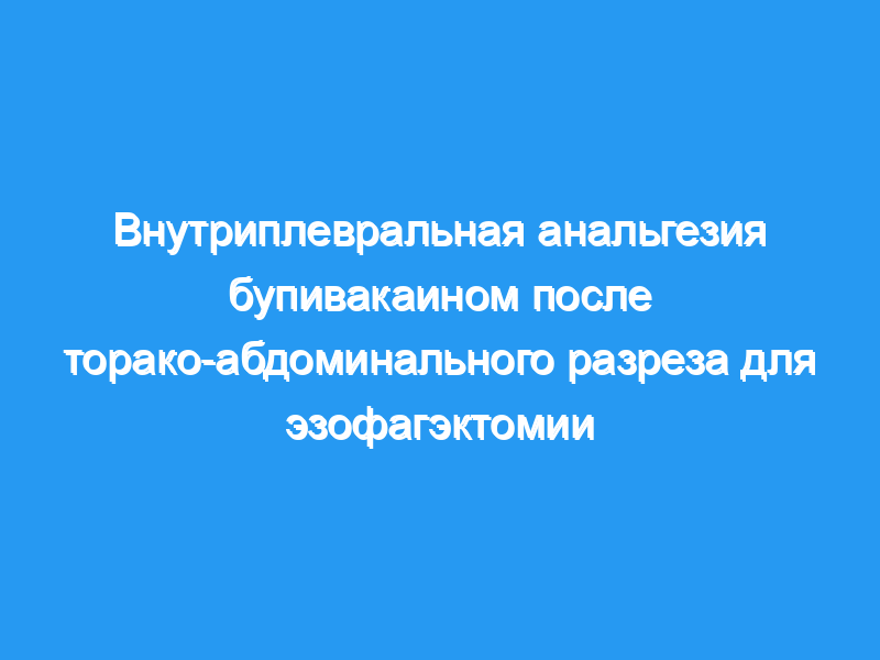 Целью этого исследования было сравнить обезболивание, полученное при внутриплевральном введении бупивакаина после эзофагэктомии с использованием торако-абдоминального разреза, с обезболиванием, полученным при внутриплевральном введении физиологического раствора.