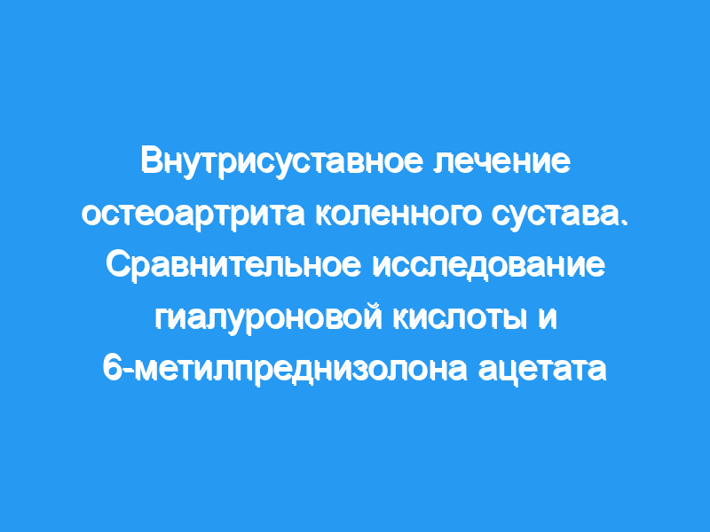 В открытом рандомизированном исследовании сравнивали эффективность и переносимость 20 мг гиалуроновой кислоты с 40 мг 6-метилпреднизолона ацетата, вводя их оба внутрисуставным путем один раз в неделю в течение 3 недель пациентам, страдающим воспалительным остеоартритом коленного сустава.