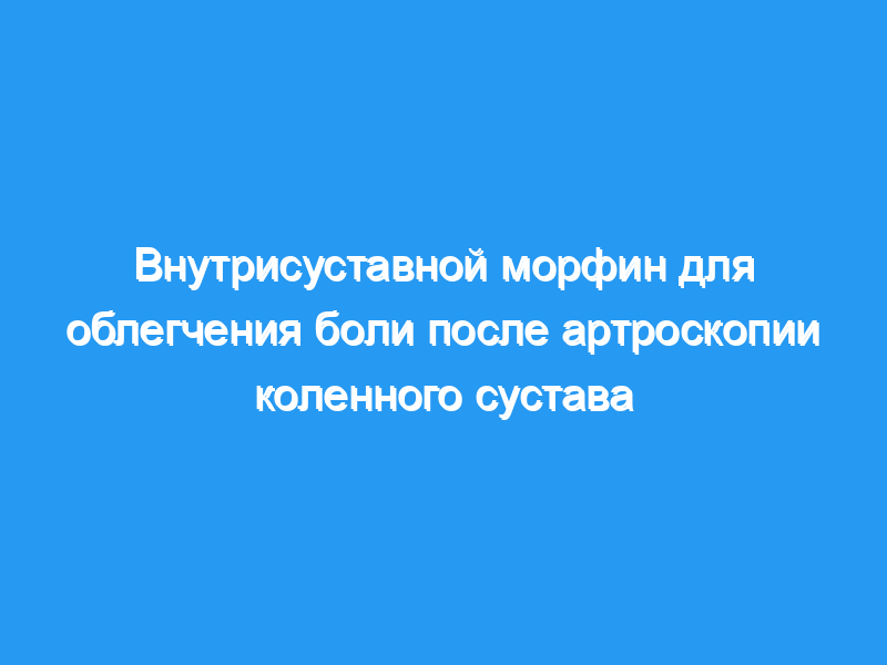 Периферическая опиоидная анальгезия хорошо документирована. Но клиническая полезность внутрисуставного введения морфина после операции остается неопределенной. Целью настоящего исследования была оценка обезболивающего эффекта внутрисуставного введения морфина после артроскопии коленного сустава.
