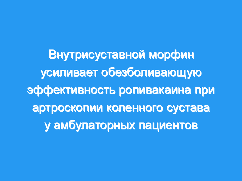 Целью этого двойного слепого рандомизированного контрольного исследования было сравнить эффективность внутрисуставного введения ропивакаина отдельно или с морфином или кетопрофеном для купирования боли после артроскопической операции на колене.