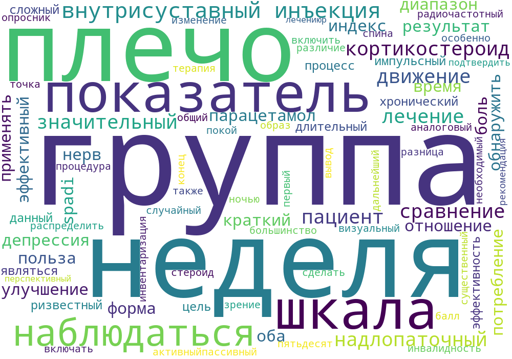 В исследование были включены пятьдесят пациентов с болью в плече. Пациенты были случайным образом распределены на 1-ю группу (внутрисуставная инъекция кортикостероидов) и 2-ю группу (PRF в надлопаточный нерв). Показатели результатов включали шкалу боли (визуальная аналоговая шкала, ВАШ), диапазон движений, индекс боли в плече и инвалидности (SPADI), Краткую форму-36, опросники по шкале депрессии Бека и потребление парацетамола.