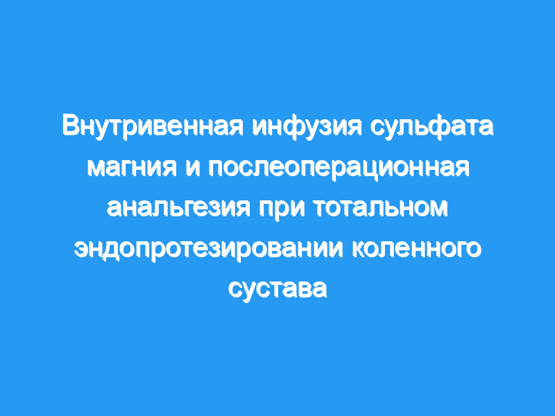 Внутривенное периоперационное введение Мг не влияло на послеоперационный контроль боли и потребление анальгетиков после тотального эндопротезирования коленного сустава. Необходимо провести дополнительные исследования с использованием различных протоколов лечения интра- и послеоперационной боли, чтобы усилить потенциальный антиноцицептивный эффект Mg.