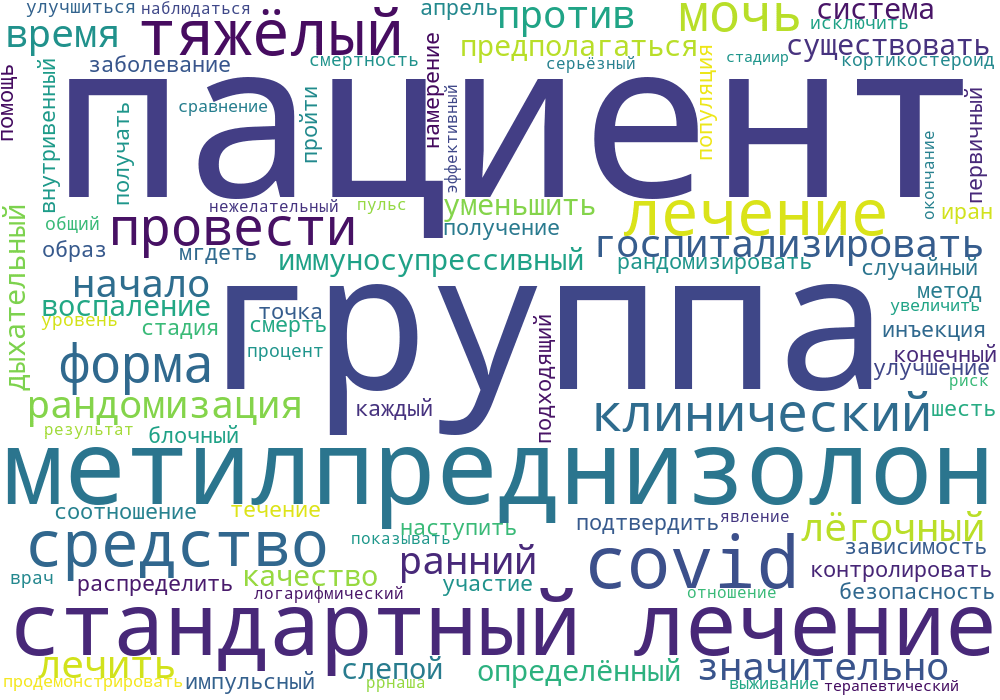 68 подходящих пациентов прошли рандомизацию (по 34 пациента в каждой группе) с 20 апреля 2020 года по 20 июня 2020 года. В группе стандартного лечения шесть пациентов получали кортикостероиды лечащим врачом перед началом лечения и были исключены из общего анализа. Процент улучшившихся пациентов был выше в группе метилпреднизолона, чем в группе стандартного лечения (94,1% против 57,1%), а уровень смертности был значительно ниже в группе метилпреднизолона (5,9% против 42,9%, p<,0,001). Мы продемонстрировали, что у пациентов в группе метилпреднизолона было значительно увеличено время выживания по сравнению с пациентами в группе стандартного лечения (логарифмический тест: p<, 0,001, отношение рисков 0,293, 95% ДИ 0,154-0,556). У двух пациентов (5,8%) в группе метилпреднизолона и у двух пациентов (7,1%) в группе стандартного лечения между началом лечения и окончанием исследования наблюдались серьезные нежелательные явления.