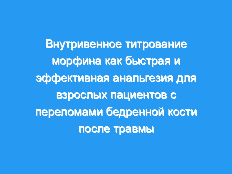 Это исследование продемонстрировало, что внутривенное титрование морфина является более быстрым и эффективным обезболивающим средством при переломах шейки бедренной кости, чем ибупрофен у взрослых пациентов сразу после травмы.