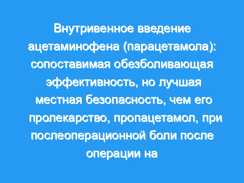 Частота жалоб пациентов на местную боль в месте инфузии была значительно реже после внутривенного введения ацетаминофена или плацебо (0%). по сравнению с пропацетамолом (49%). В заключение, ацетаминофен 1 г и пропацетамол 2 г превосходили плацебо в отношении обезболивающей эффективности, с более частой частотой местной боли в месте инфузии пропацетамола.