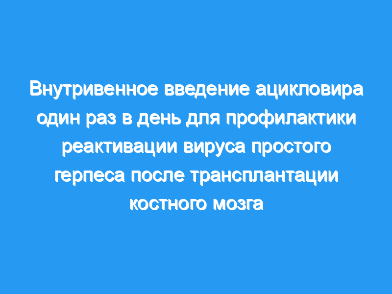 Внутривенное введение ацикловира один раз в день может значительно отсрочить время появления культурально-положительных поражений ВПГ после трансплантации костного мозга, но вирусологический и клинический прорыв может возникнуть, и для оптимальной профилактики потребуется внутривенное введение ацикловира более одного раза в день.