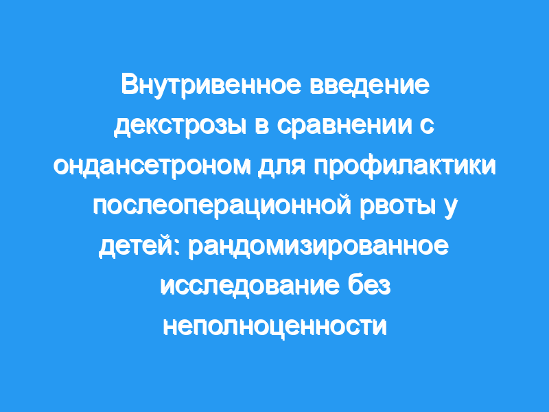 Основной целью было изучение эффективности интраоперационного внутривенного введения декстрозы для противорвотной профилактики у детей, перенесших амбулаторную операцию.